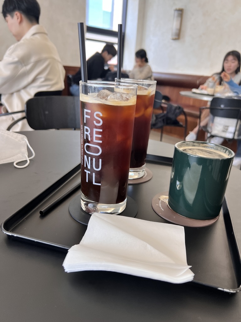저는 아이스아메리카노를 좋아해서 아아를 시켰고 친구는 따뜻한 라떼를 시켰어요.
